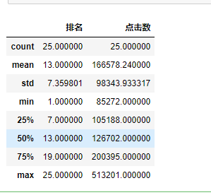 #异常值的观察 df = pd.DataFrame(pd.read_excel('爱奇艺排行.xlsx')) df.describe()