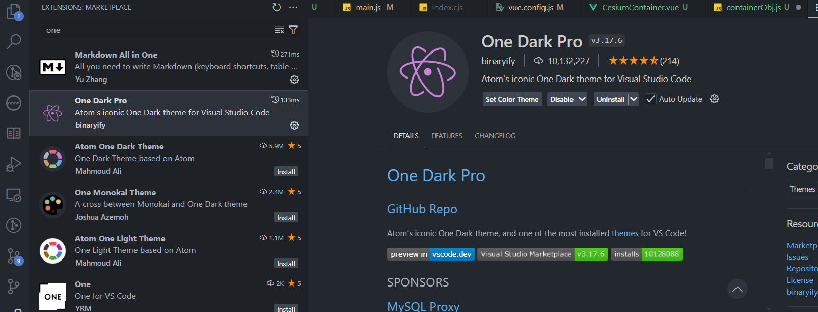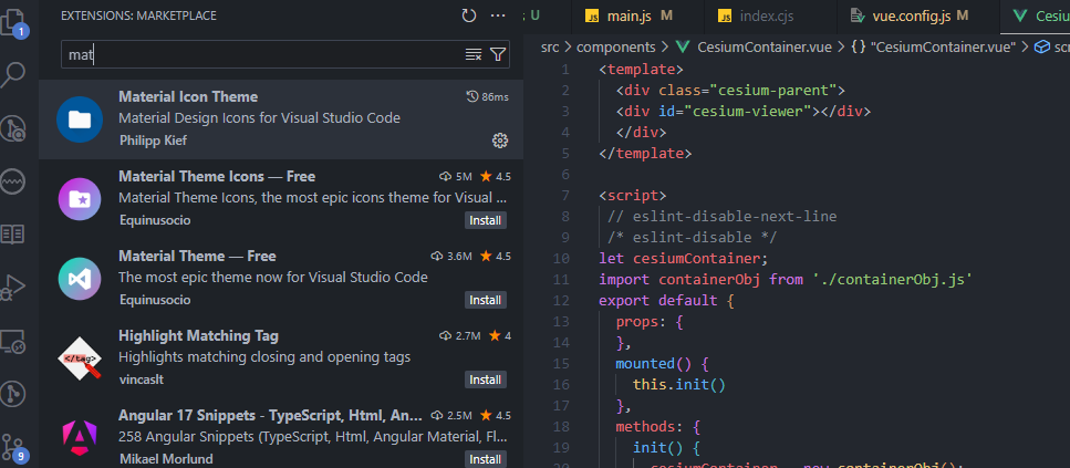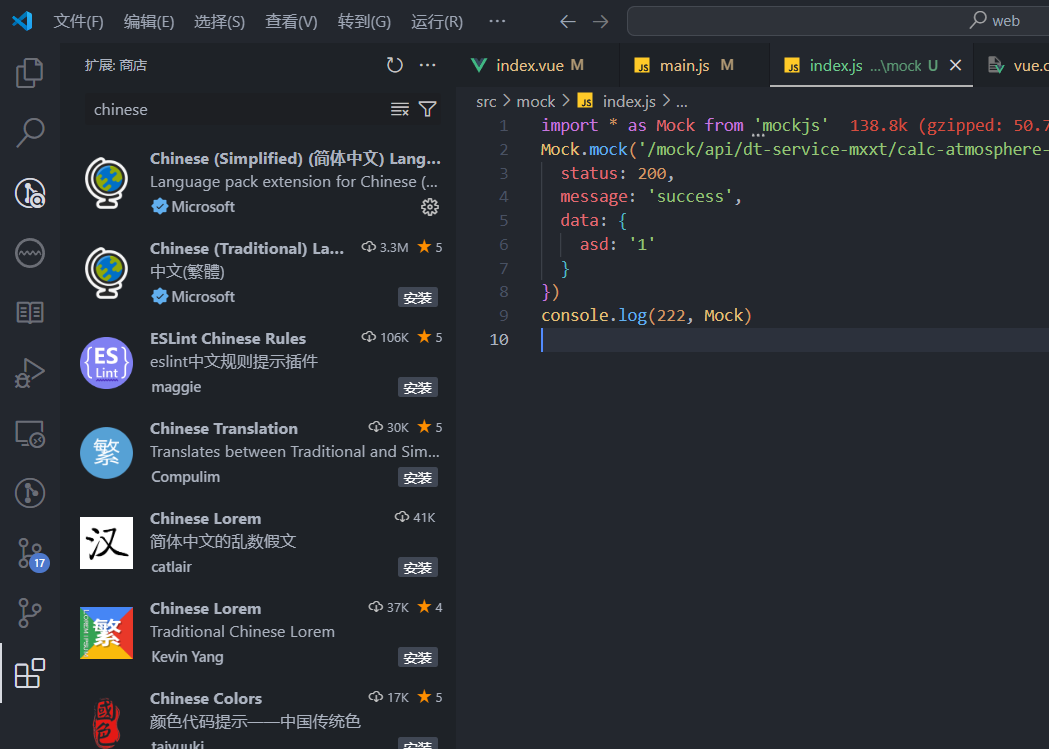 1. one dake pro该插件是给不同变量富裕不同颜色 启用后的效果 2. material icon theme用来给不同文件添加图标 启用后的效果 3. import cost该插件提示导入的库的大小 启用后的效果 **4.vscode汉化包,启用汉化包重启后对vscode进行汉化处理 ** 启用以后效果