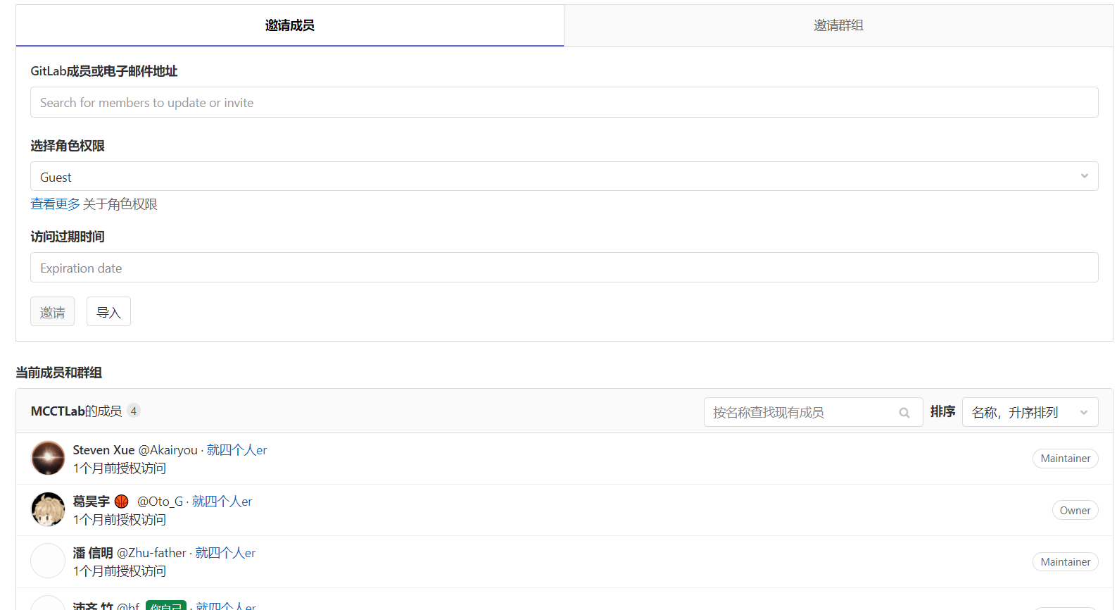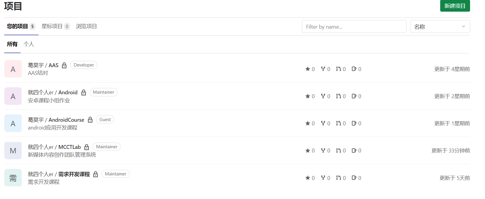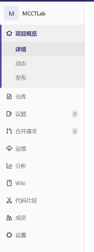 在这个界面中可以清晰的看到自己参加的项目和创建的项目。 第四个MCCTLab就是我自己团队的项目,接下来的介绍就由这个项目为模板。