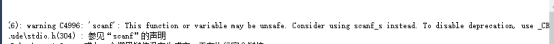 如果要让这段描述失效,只需将给出的_CRT_SECURE_NO_WARNINGS定义到程序开头即可,如图