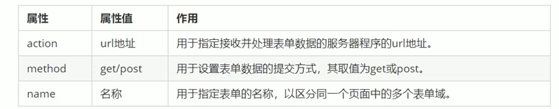 <form action="url地址" method="提交方式" name="表单域名称"> 各种表单元素控件 </form>