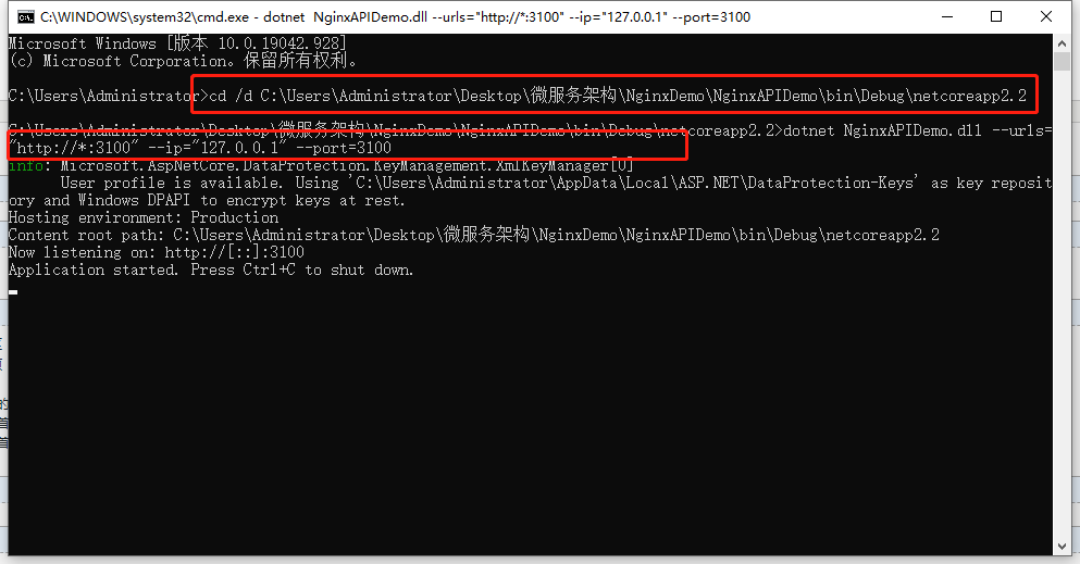 dotnet NginxAPIDemo.dll --urls="http://*:3100" --ip="127.0.0.1" --port=3100