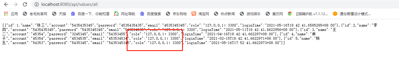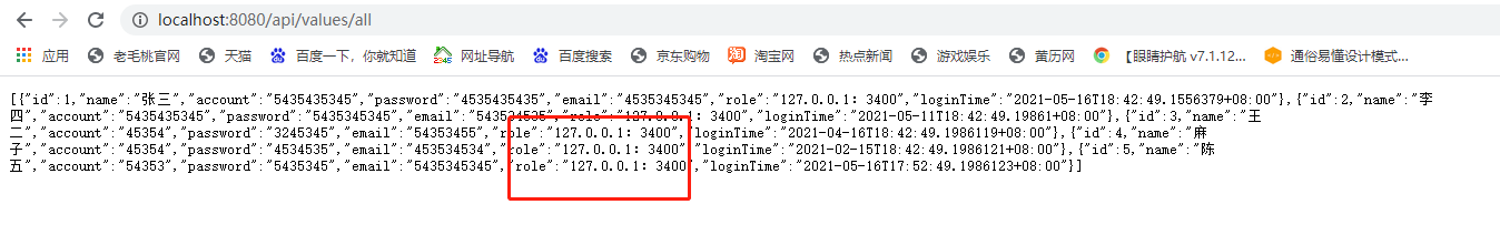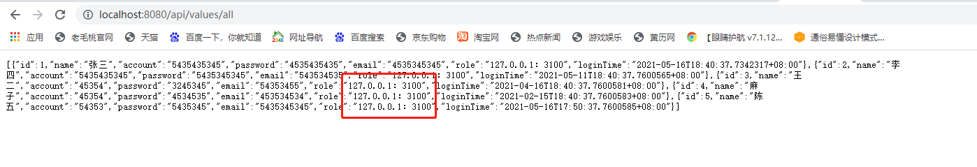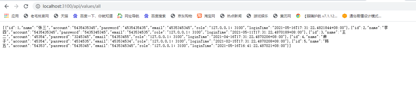 通过api接口获取数据:http://localhost:3100/api/values/all
