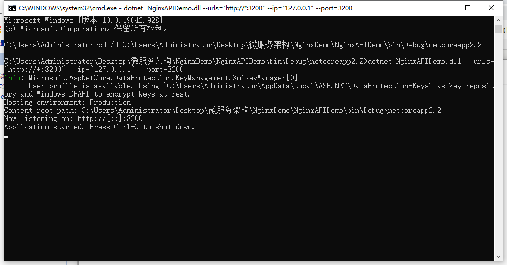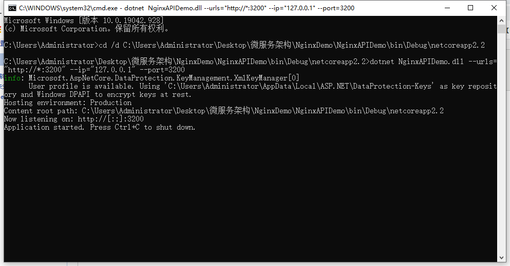 定义api接口端口3200:dotnet NginxAPIDemo.dll --urls="http://*:3200" --ip="127.0.0.1" --port=3200