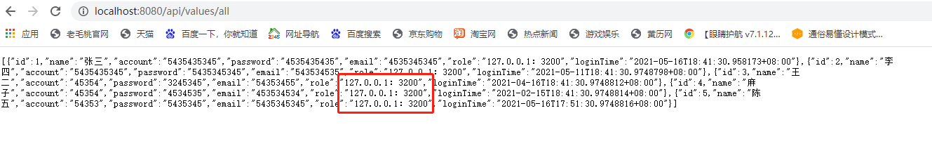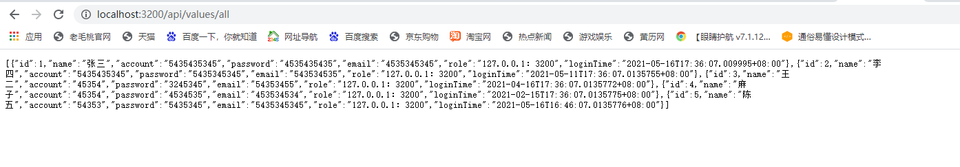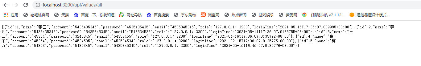 通过api接口获取数据:http://localhost:3200/api/values/all