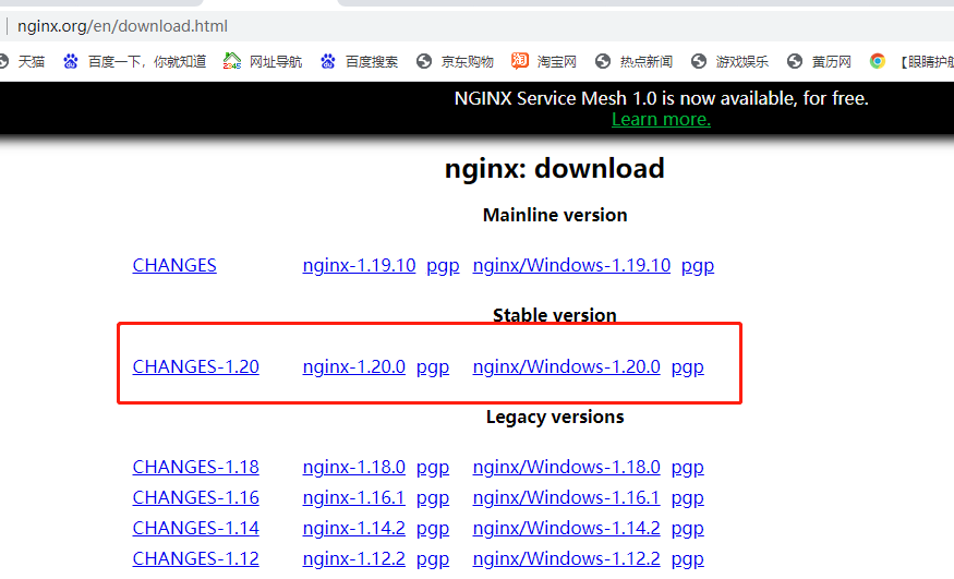 这样服务端实例已经配置好了,下面需要下载nginx,官网: http://nginx.org/en/download.html