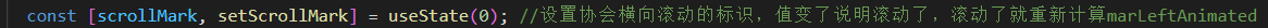 const [scrollMark, setScrollMark] = useState(0); //设置协会横向滚动的标识,值变了说明滚动了,滚动了就重新计算marLeftAnimated