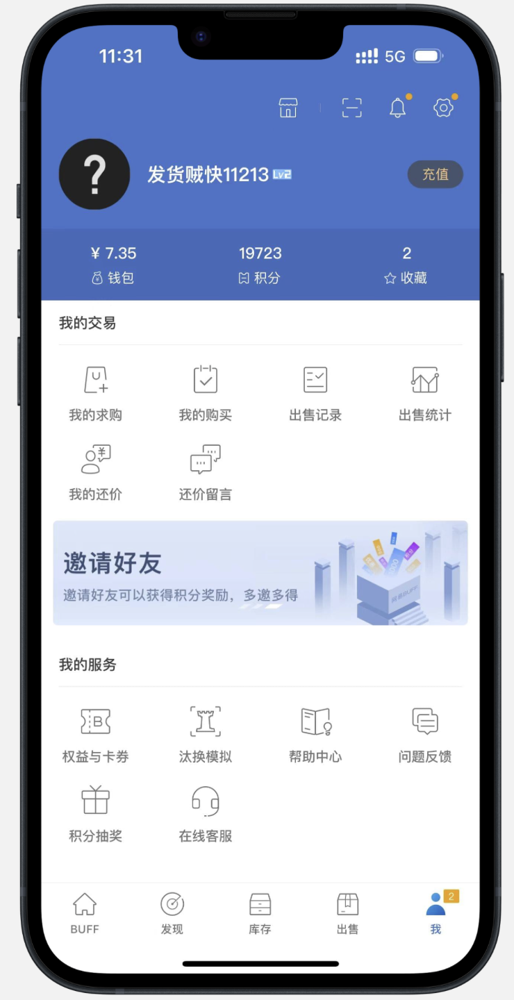 库存物品:个人主页会展示用户当前拥有的库存物品,让其他用户了解到该用户的资产情况和交易品质。