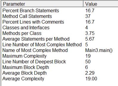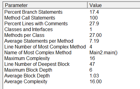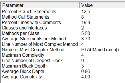 图为题目集4(7-2)源码在SourceMonitor中的分析图: