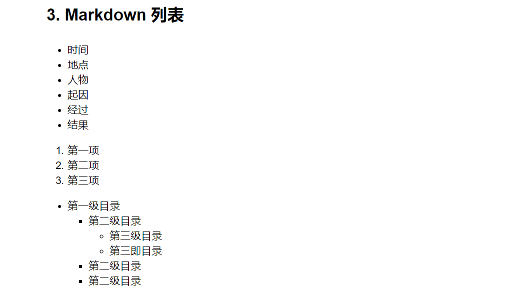 3. Markdown 列表,Markdown 支持有序列表和无序列表
