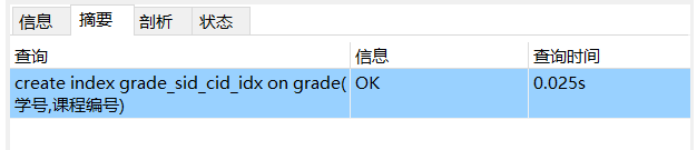 3. 使用sql语句为grade表的“分数”字段创建一个普通索引,命名为grade_idx。
