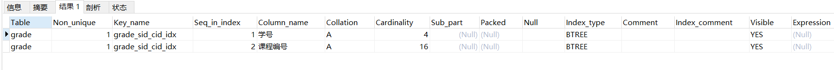 6. 使用sql语句删除索引grade_idx。再次查看grade表上的索引信息。