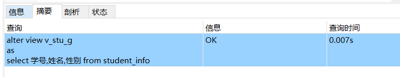 9. 使用sql语句修改视图v_stu_g,显示学生的学号、姓名、性别。