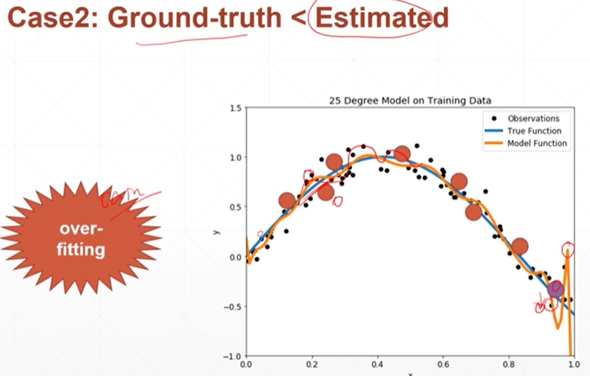 实际真实的模型的复杂度<所使用的模型的复杂度——过拟合