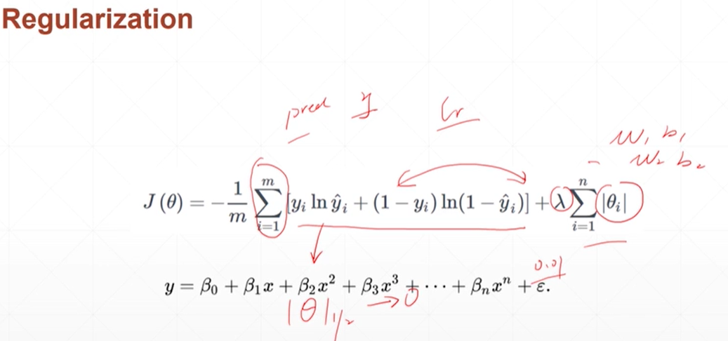 在末尾加上 入和θ的范数的累加。这样再求loss梯度更新参数的时候,θ的范数在更新的过程中也会逐渐的减小