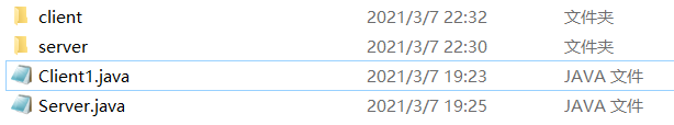 2.把写好的java文件放入src文件夹,现在写好了server.java和client1.java两个文件