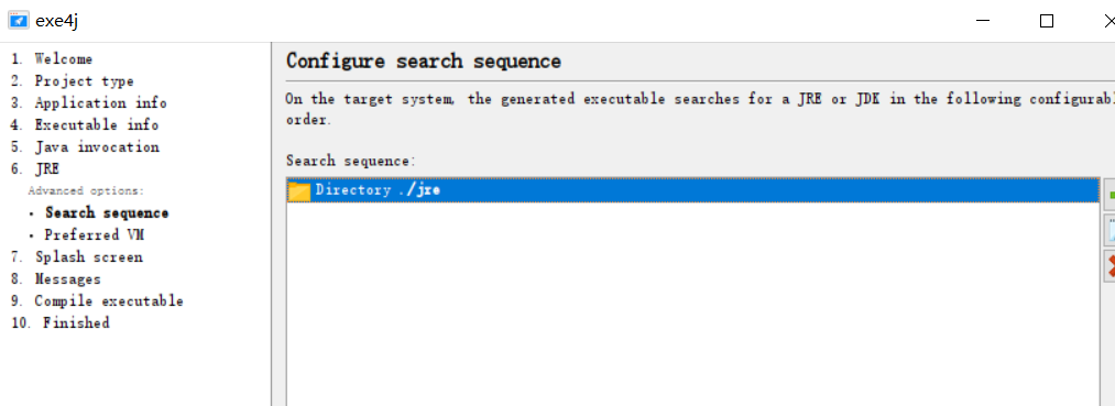 要是要在其他没有装java的机子上运行要把sequence里面原来的给删除掉,然后添加jre的相对路径,发文件时jre也在此exe的同级目录一起发过去,就可以运行了
