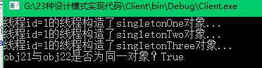 Console.WriteLine("obj21与obj22是否为同一对象?{0}", object.ReferenceEquals(obj21, obj22));//运行证明:单例模式返回的实例是同一个实例,操作其中一个会影响另一个