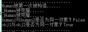 Console.WriteLine("human1与human2是否为同一对象?{0}", object.ReferenceEquals(human1, human2));//运行证明,这里的两个实例不是同一个实例,他们都是被克隆的副本