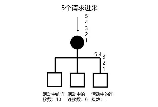 这是一种根据实时的负载情况,进行动态负载均衡的方式。维护好活动中的连接数量,然后取最小的返回即可。