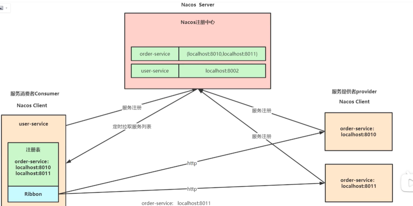 定时从注册中心拉取nacos的注册列表到nacos client本地。