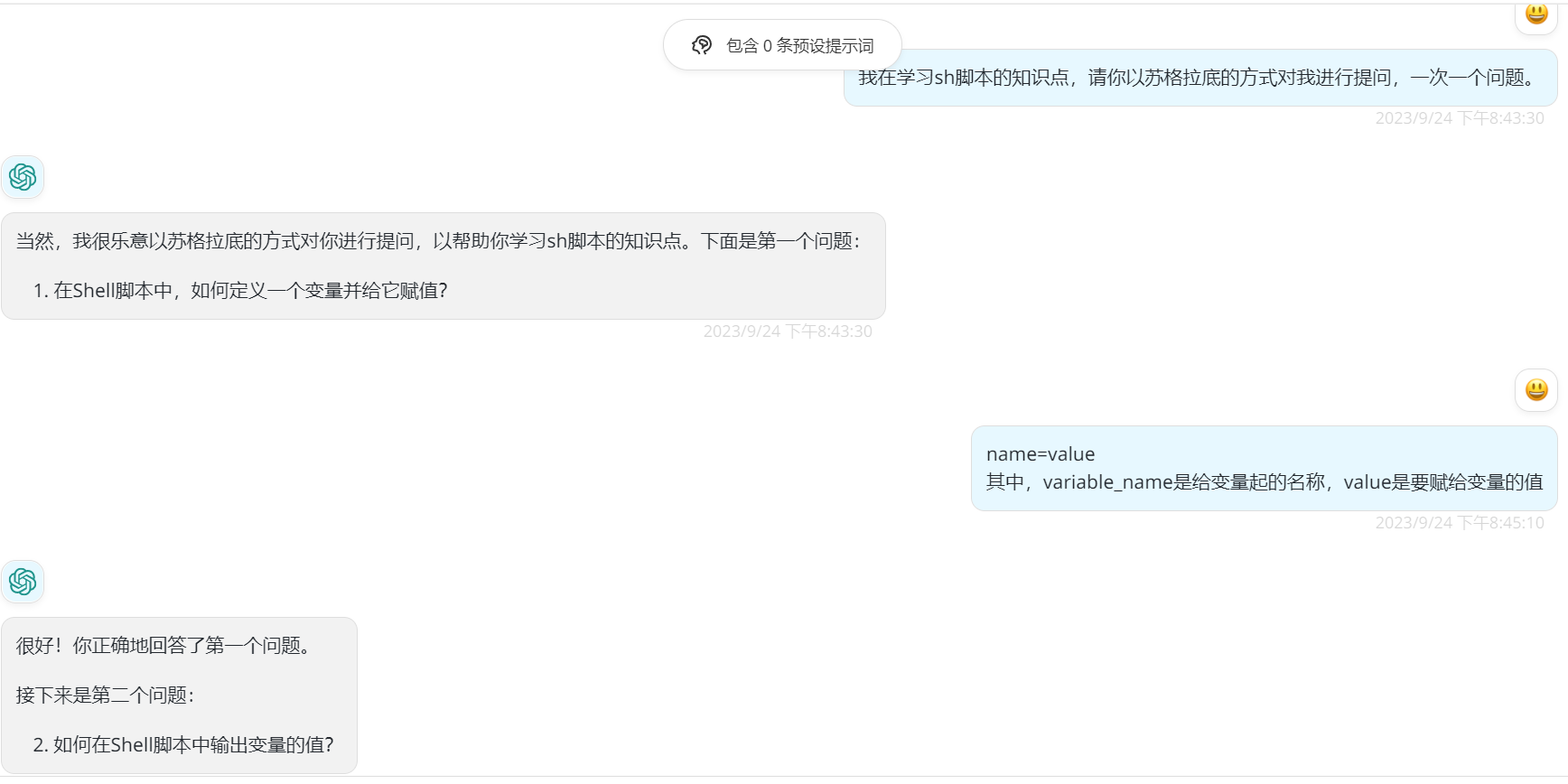 我在学习sh脚本知识点,请你以苏格拉底的方式对我进行提问,一次一个问题。