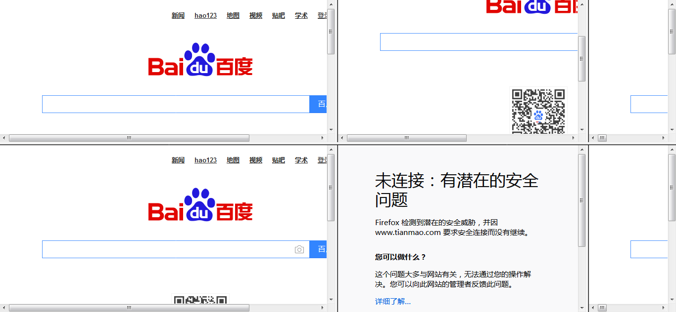 <!DOCTYPE html> <html> <head> <meta charset="utf-8"> <title></title> </head> <!-- 用它body必须去掉 frameset 引用是在frame里src--> <frameset cols="50%,25%,*" rows="50%,*"> <frame src="https://www.baidu.com"> <frame src="https://www.baidu.com"> <frame src="https://www.baidu.com"> <frame src="https://www.baidu.com"> <frame src="https://www.tianmao.com"> <frame src="https://www.baidu.com"> <frame src="https://www.baidu.com"> </frameset> </html>