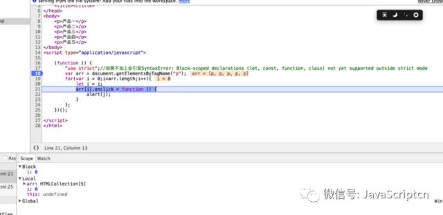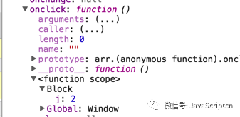 此时的该数组项的<function scope>的 Block 域有个 j 存储的就是对应的数组下标