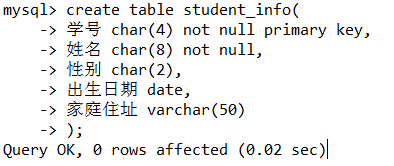 insert into student_info (学号,姓名,性别,出生日期,家庭住址)