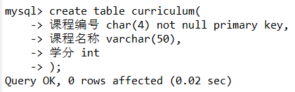 课程名称 varchar(50),