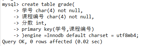 创建grade表