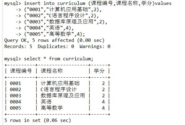 insert into curriculum (课程编号,课程名称,学分)values