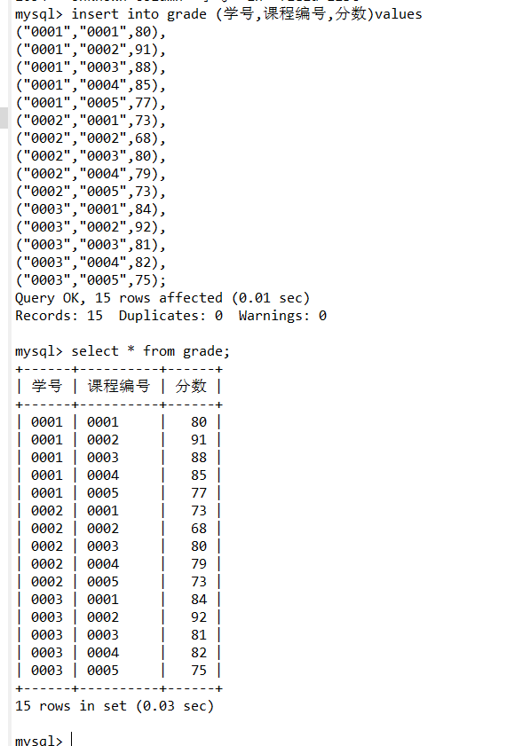 向grade表插入数据