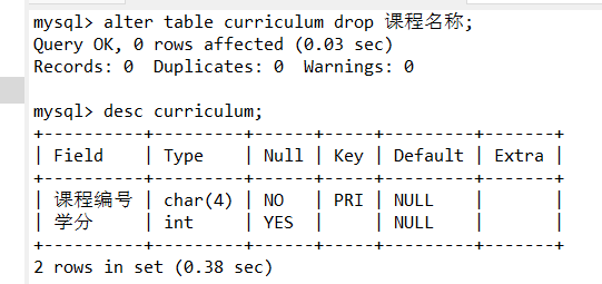 alter table curriculum drop 课程名称;
