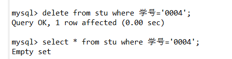 delete from stu where 学号='0004';