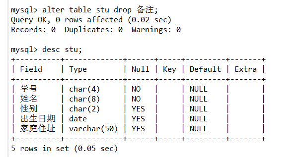 alter table stu drop 备注;