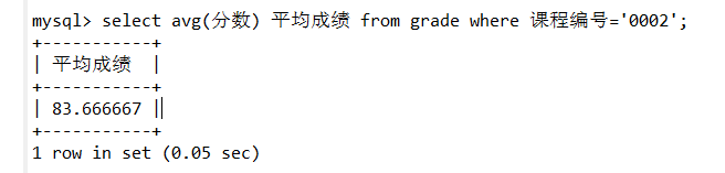 (2)在grade表中查询课程编号为0002的学生的平均成绩。