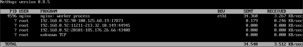 安装成功后可以通过netgos命令查看网络带宽的使用情况。