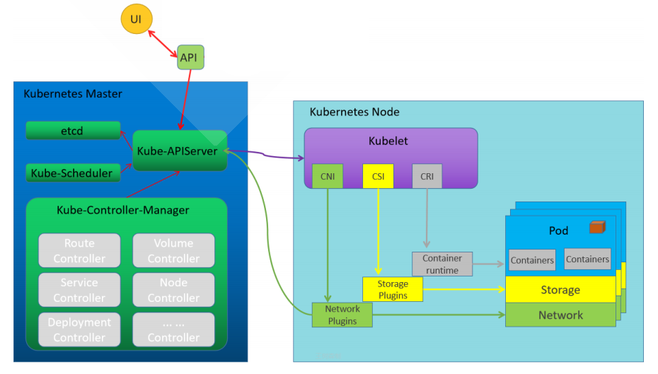 - kub-Scheduler:计划调度器,把k8s的各种工作下发给具体来完成任务的node节点