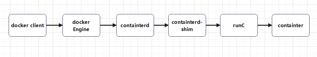 - containterd:docker引擎去调用containterd,再去连接到containterd-shim(中间的一个切片/垫片类似),再去连接到runC,再去运行containter(也就起容器)
