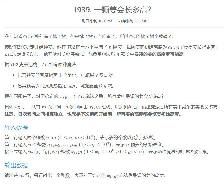 /*第一行输入两个整数 n,m (1≤n,m≤10^5),表示姜的个数以及询问次数。
