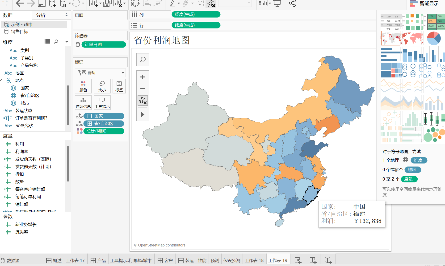 5、制作中国各个省份地区的利润仪表板。
