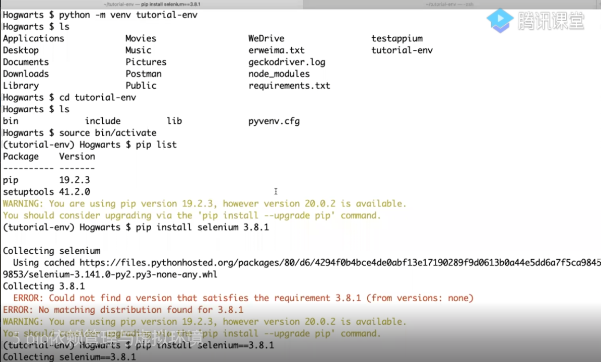 执行命令python -m venv tutorial-env创建一个名为tutorial-env的虚拟环境