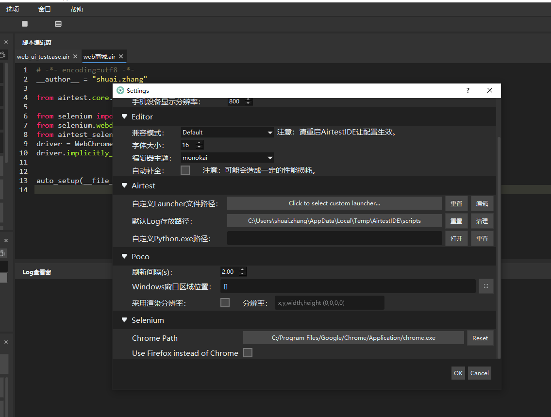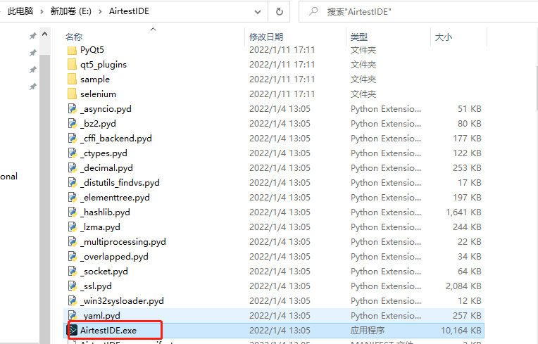 下载并解压安装包 在目录下找到AirtestIDE.exe后双击启动