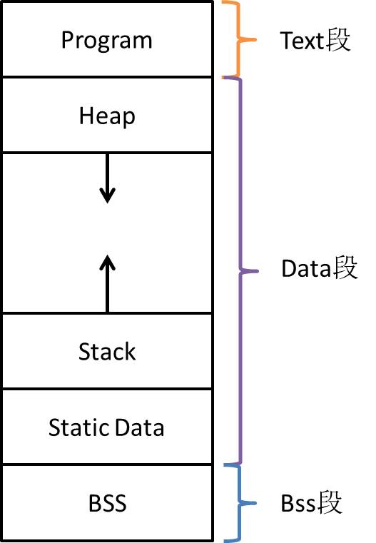 任何一个程序本质上都是由 bss段、data段、text段三个组成的。