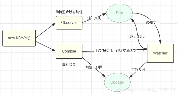 MVVM的原理图 前3张为https://github.com/DMQ/mvvm作者提供