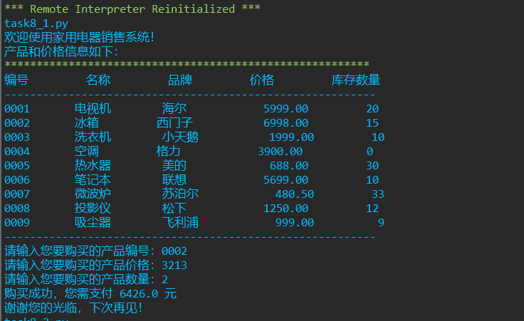 print(f'{"0001":<10} {"电视机":<10} {"海尔":<10} {5999.00:.2f} {20:10}')