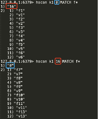 使用方法: 第一次遍历时,cursor 值为 0 将返回结果中第一个整数值作为下一次遍历的 cursor 一直遍历到返回的 cursor 值为 0 时结束,如下图: