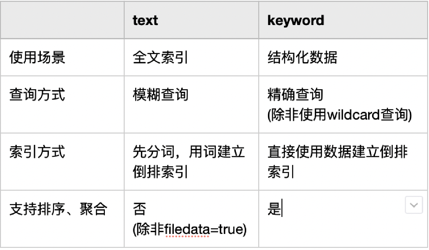 其他数据类型:geo_point(地理类型,横纵点,即经纬度)、completion(特殊类型,提供自动补全推荐功能)