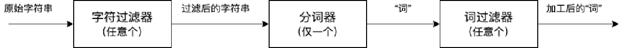 Token filters:词过滤器,对词进行加工,转换(大小写),去除(停用词),增加(同义词)[此工作也可以在分词器完成]